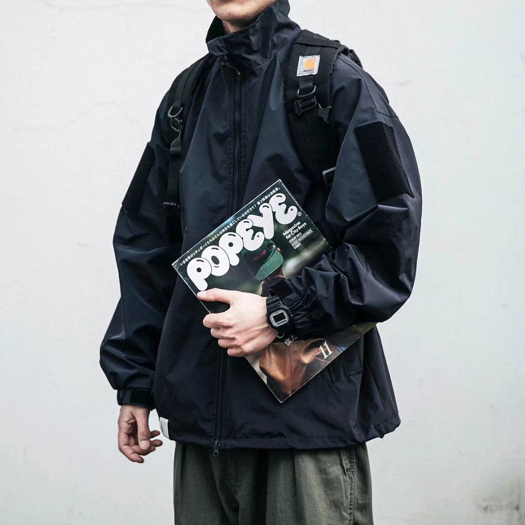 美式复古宽松立领机能工装教练夹克男士休闲防水双拉链冲锋衣外套热门设计联盟服务商